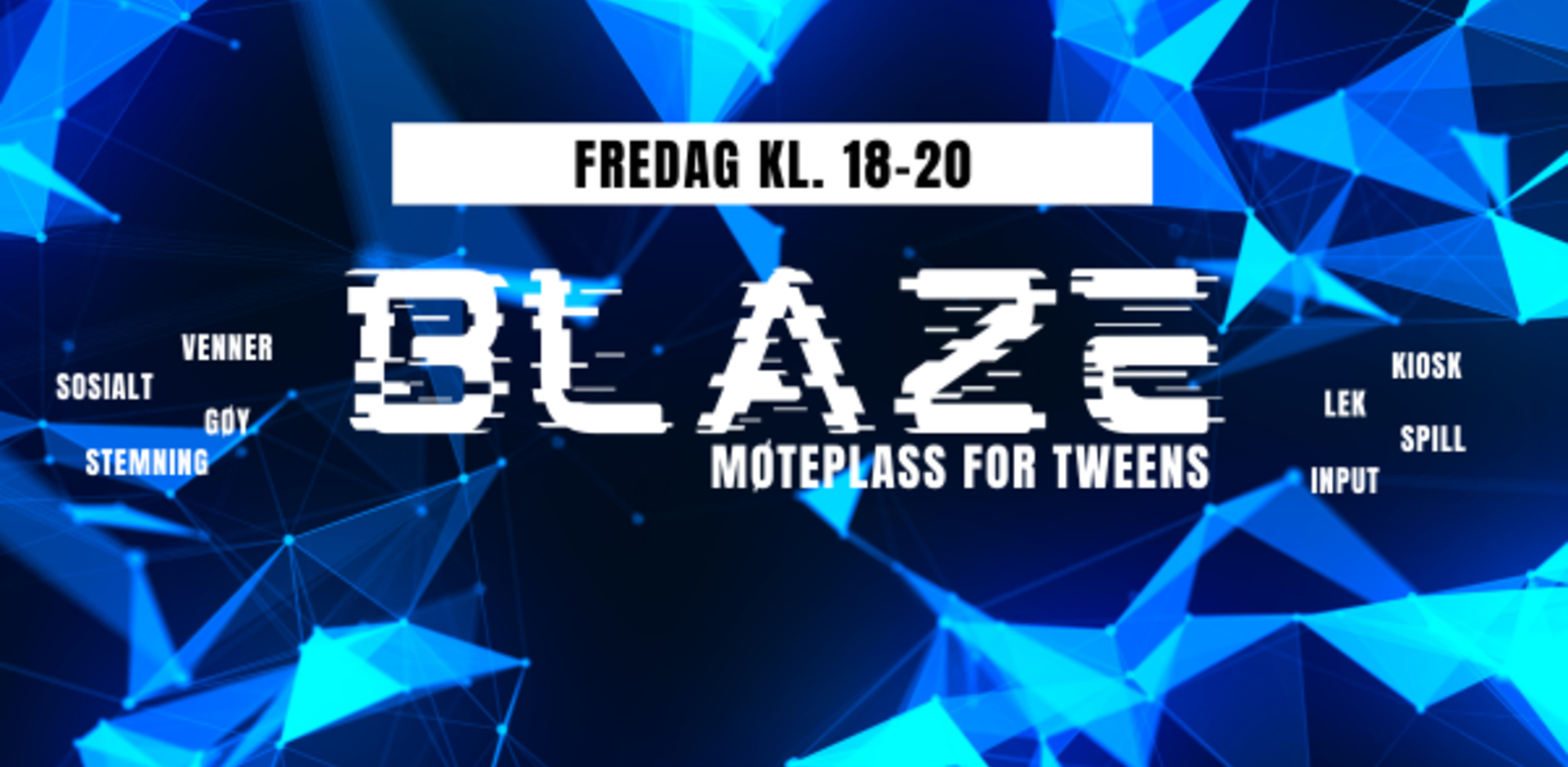 Går du i 5. - 7. klasse? Da er du velkommen til BLAZE på fredag fra kl. 18.00 - 20.00. Vi har klubbkveld annenhver fredag i partallsuker. Her vil du møte andre på samme alder som deg! Det blir spill, lek, aktiviteter, pep-talk og kiosk.